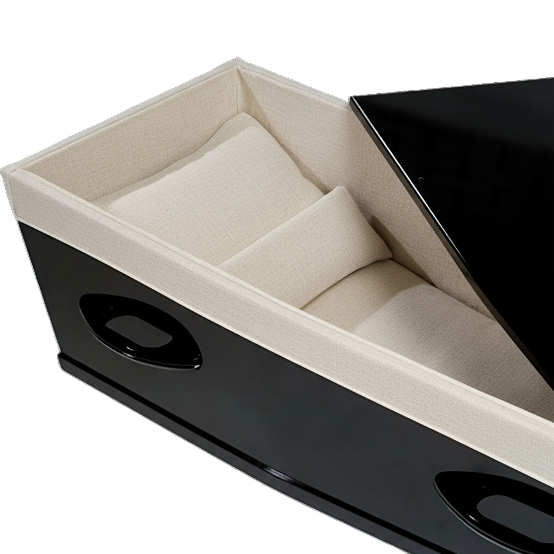 Met een RAL-kleur naar keuze maakt u van deze kist een persoonlijk statement: ingetogen, warm of juist uitgesproken. Vervaardigd uit hoogwaardig spaanplaat, met een interieur van satijn of katoen voor een rustplaats die even stijlvol is als liefdevol.