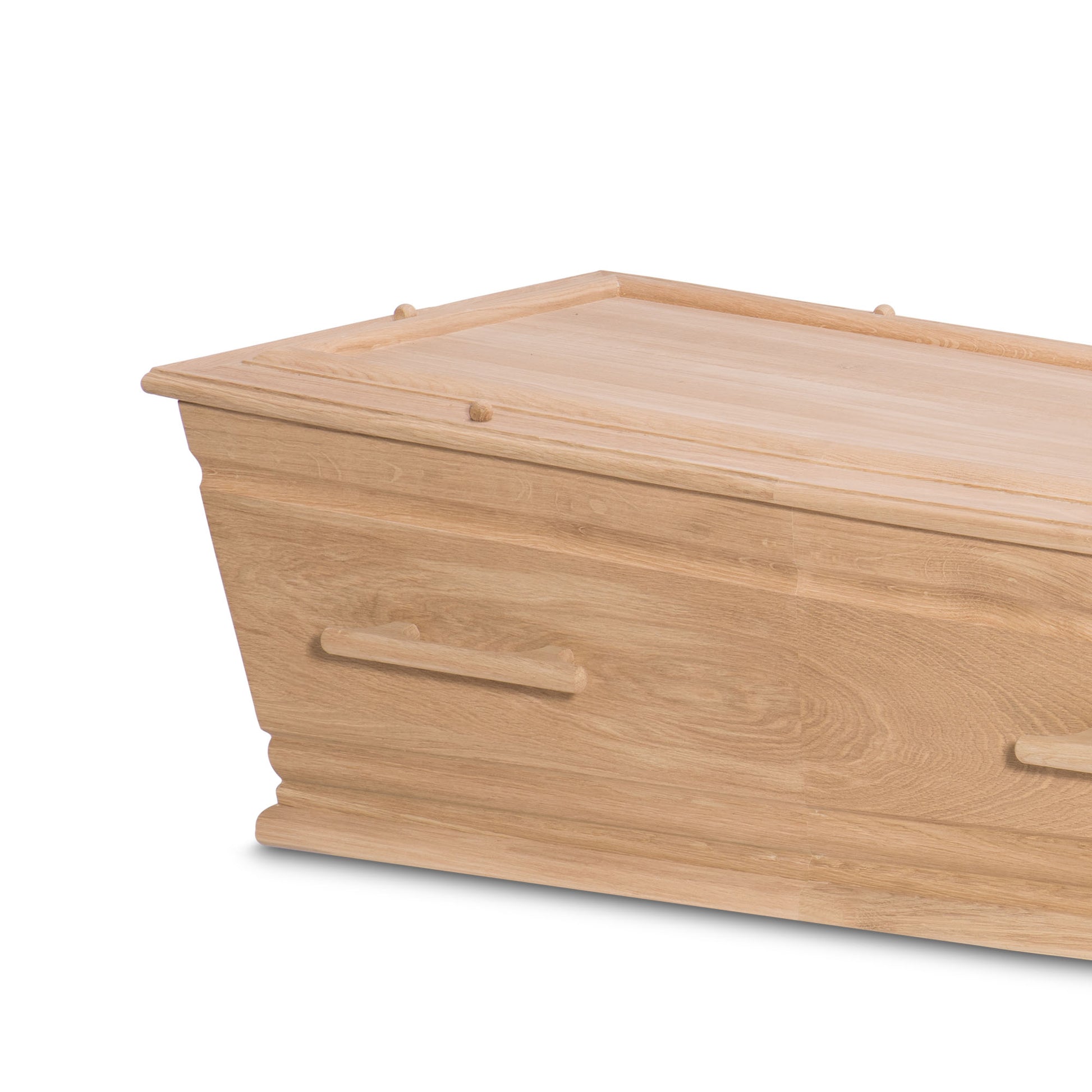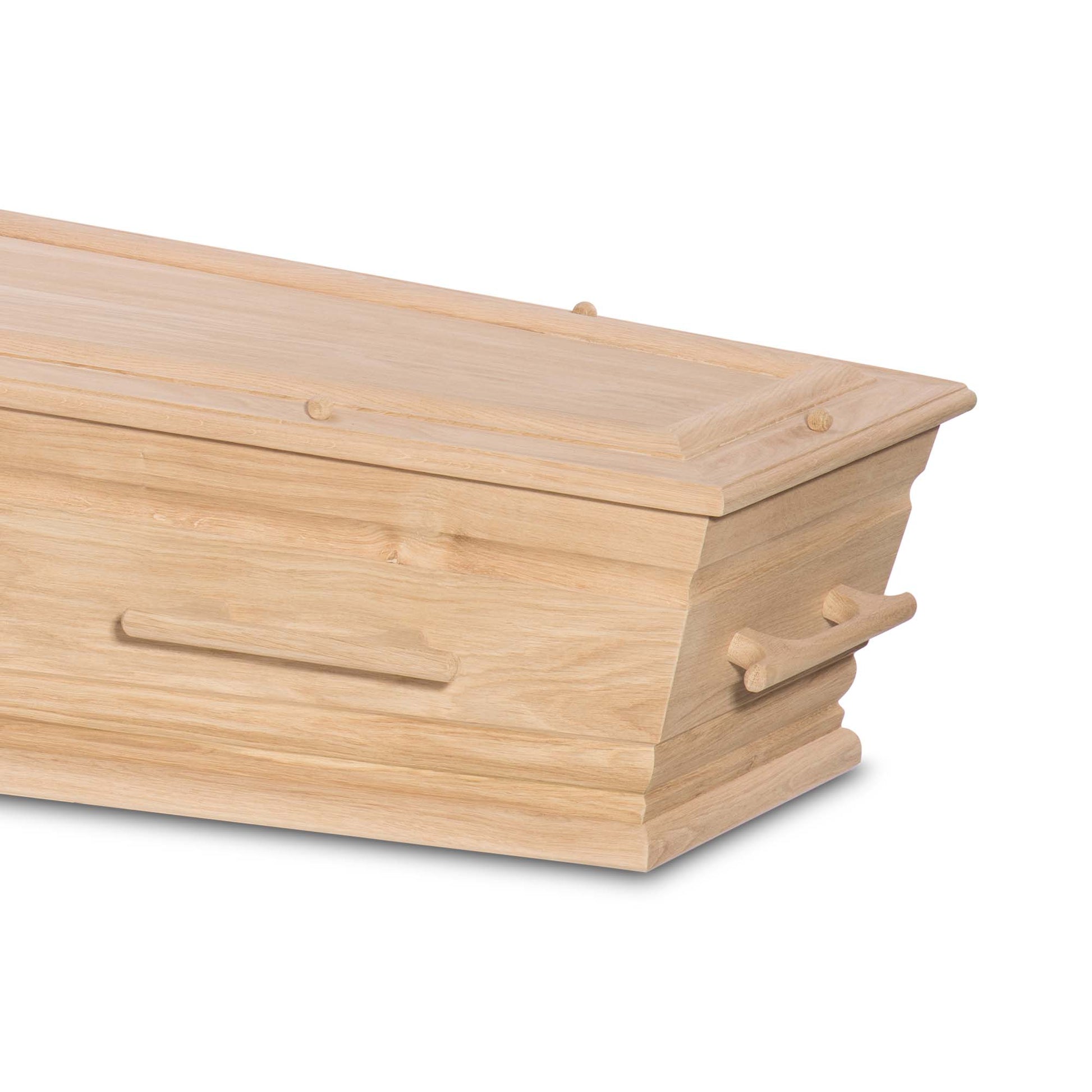 Bij zacht avondlicht en kalm water straalt de Eternal Flame uitvaartkist rust en eenvoud uit. Gemaakt van verfijnd eikenhout met subtiele houten grepen en een interieur van strak katoen met zacht dekentje, een serene en liefdevolle rustplaats.