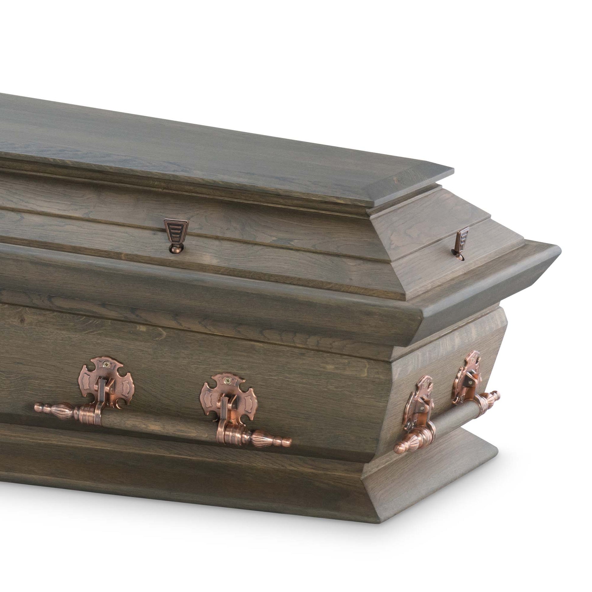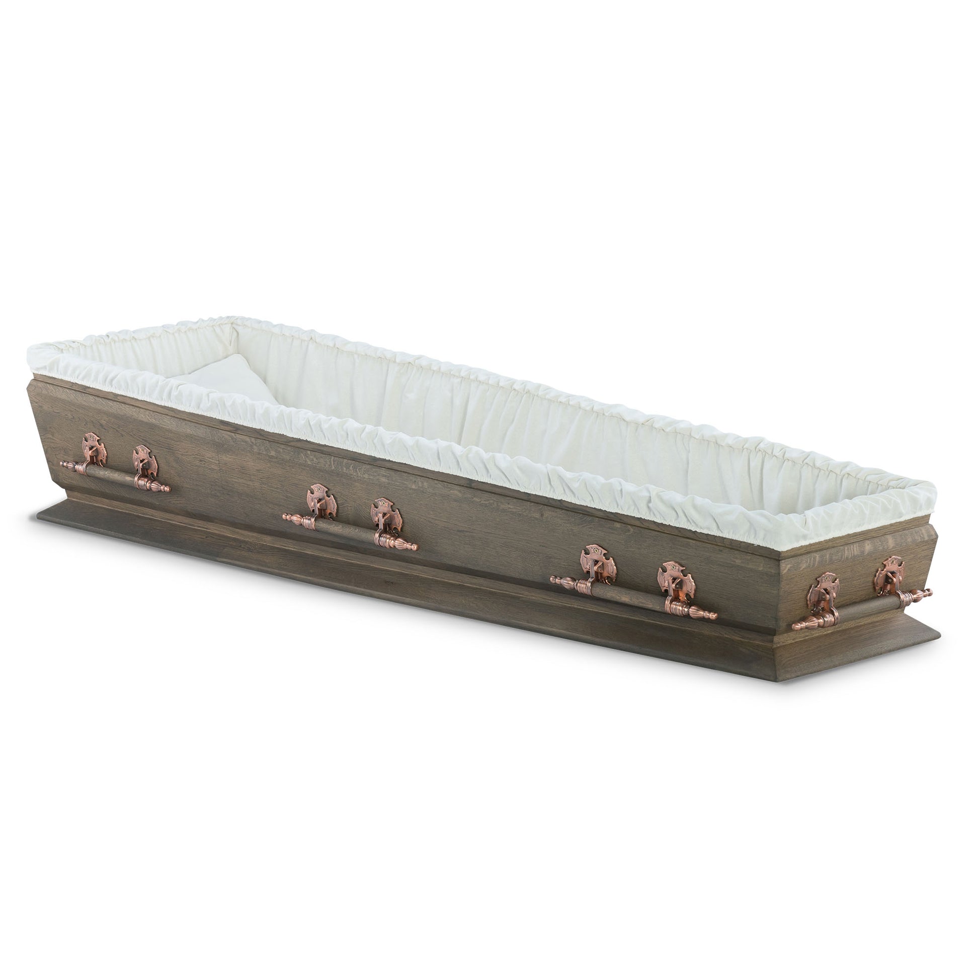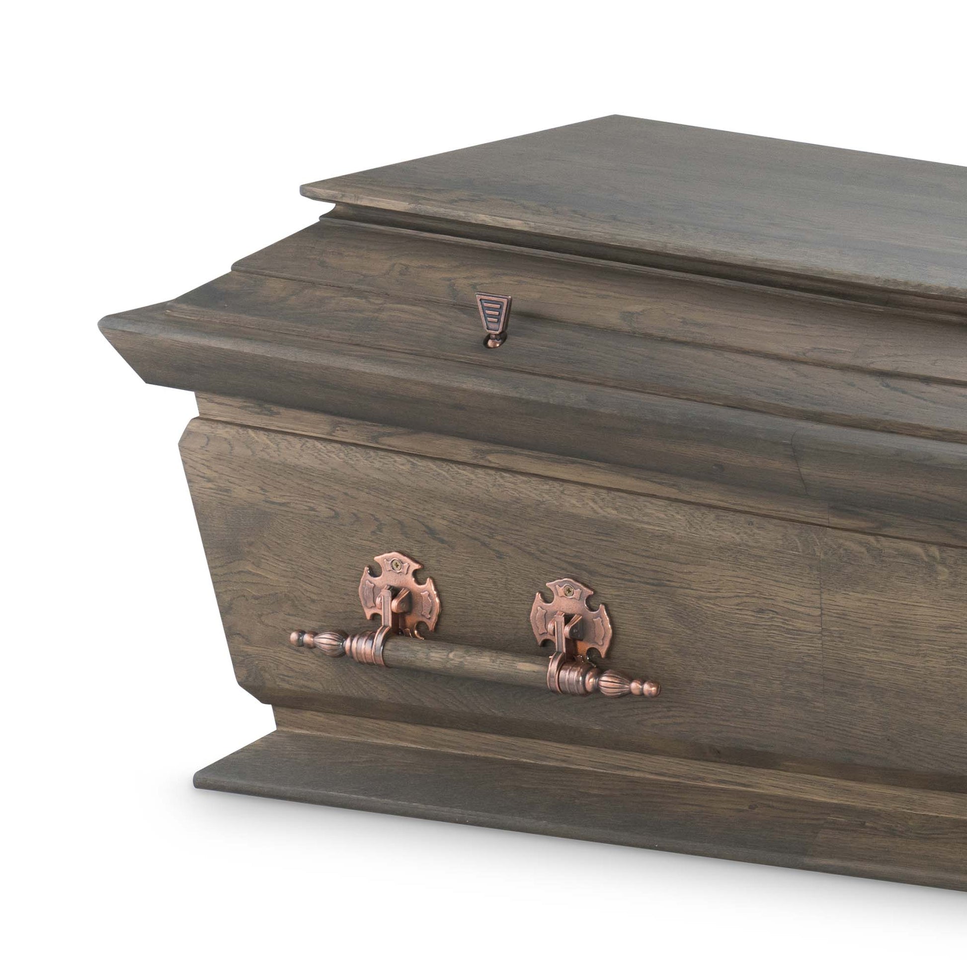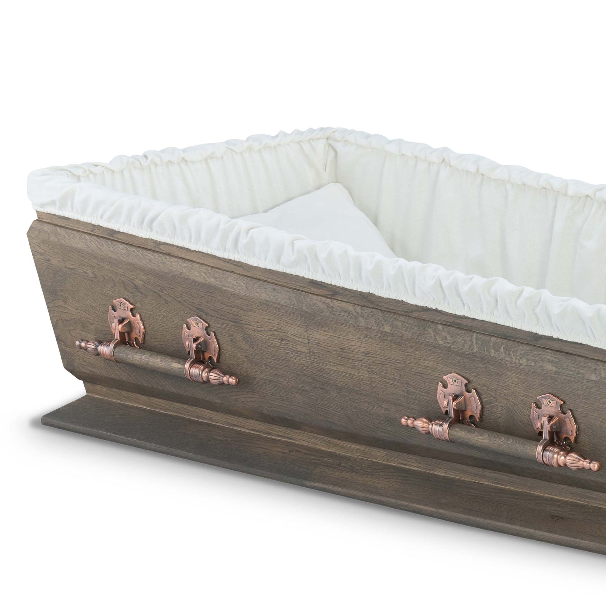 In olijfgroen gebeitst eikenhout straalt de Heaven’s Kiss ingetogen klasse en rust uit. De warme houtstructuur en klassieke oud koperen details geven deze kist een elegante en tijdloze uitstraling. Binnenin biedt het strak beklede katoenen interieur met zacht dekentje een serene rustplaats vol geborgenheid — een stijlvol en waardig eerbetoon.