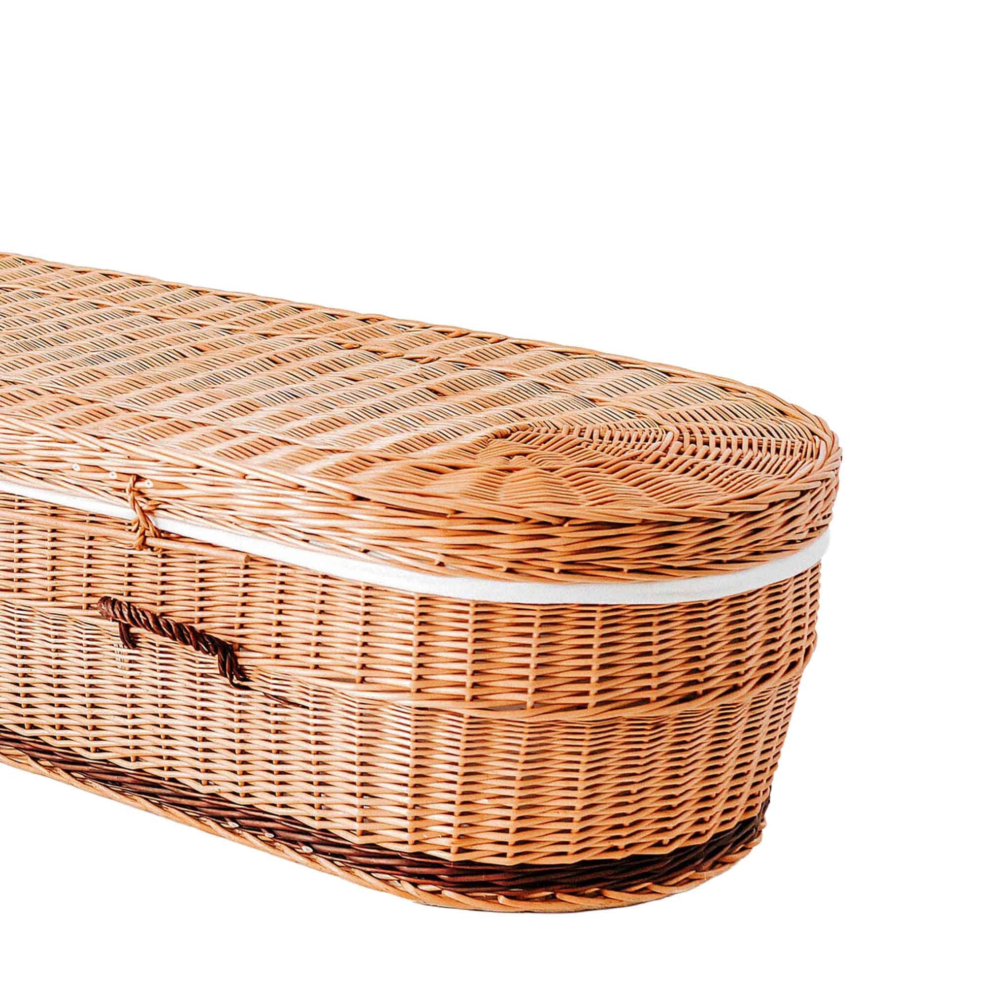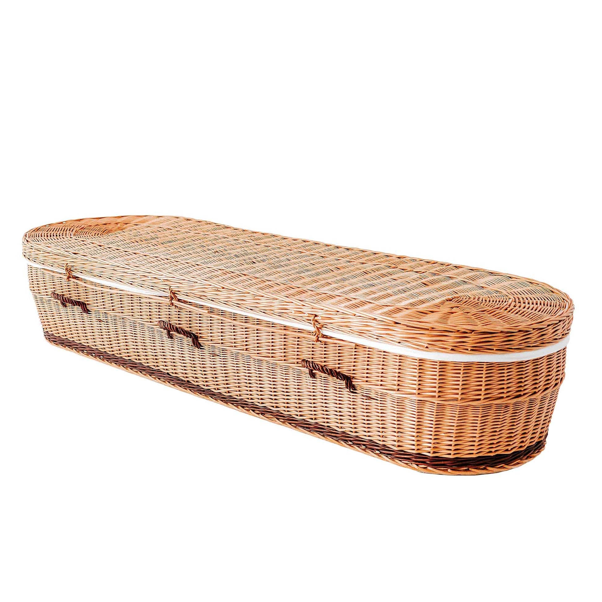 In het zachte licht van een klassieke omgeving straalt de uitvaartmand Golden Memory rust, warmte en verfijning uit. Handgevlochten van 100% ecologisch wilgenteen in lichte natuurtinten, met een interieur van puur katoen, compleet met hoofdkussen en deken. Elegante details en stevige grepen geven het ontwerp een ingetogen, stijlvolle uitstraling — ontworpen voor een waardig afscheid dat in herinnering blijft.