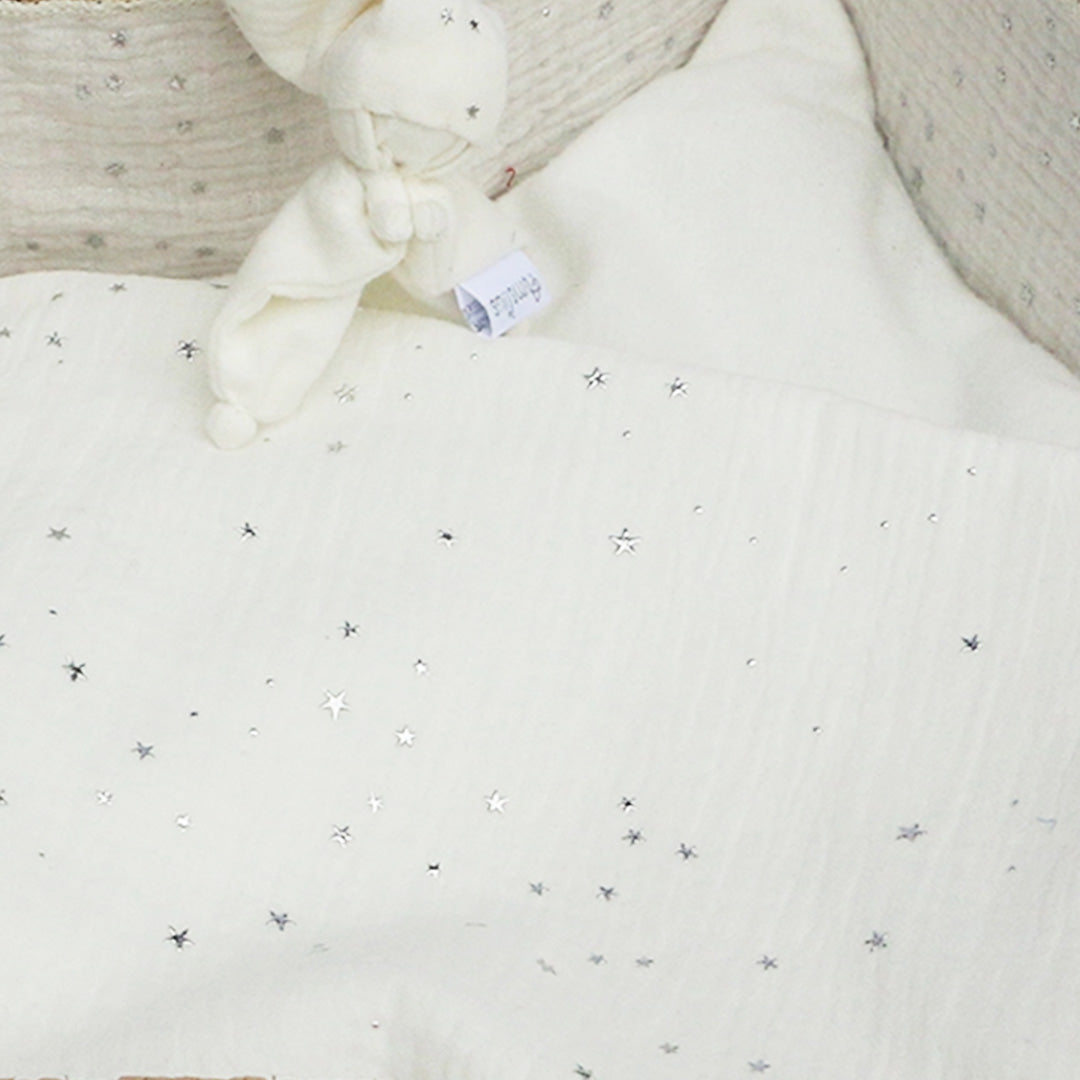 Binnenzijde: Ecru hydrofiel met zilveren sterretjes
