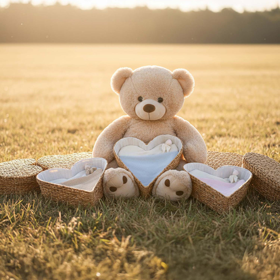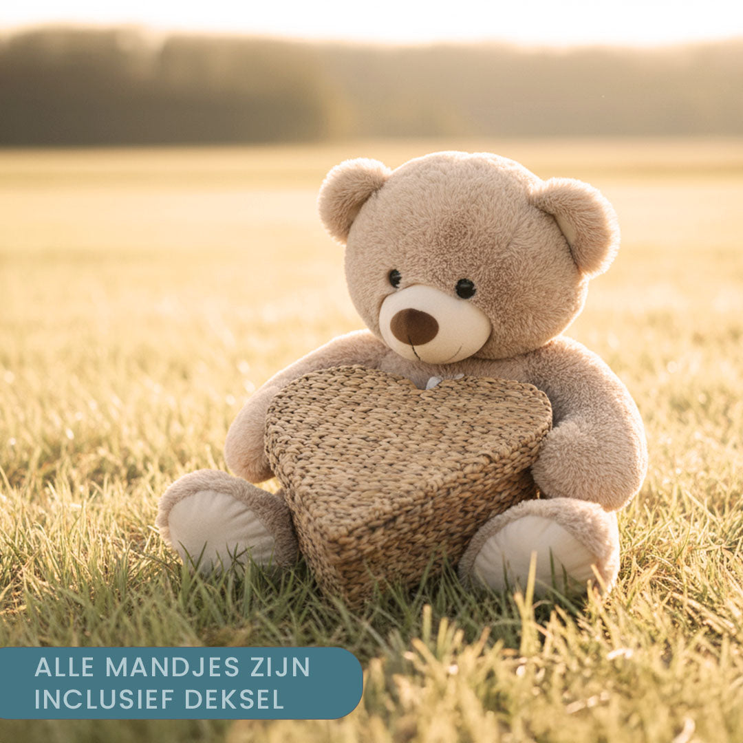 Het hartvormige mandje van waterhyacint is met liefde gemaakt als een warm, geborgen plekje om afscheid te nemen. De natuurlijke structuur van het vlechtwerk straalt rust en puurheid uit, terwijl de zachte hydrofiele binnenrand en het matrasje voor tederheid en comfort zorgen. Inclusief een klein poppetje van hetzelfde materiaal en een bijpassend kaarsje, een liefdevol gebaar van troost en licht. Een mandje dat symbool staat voor liefde in haar puurste vorm.