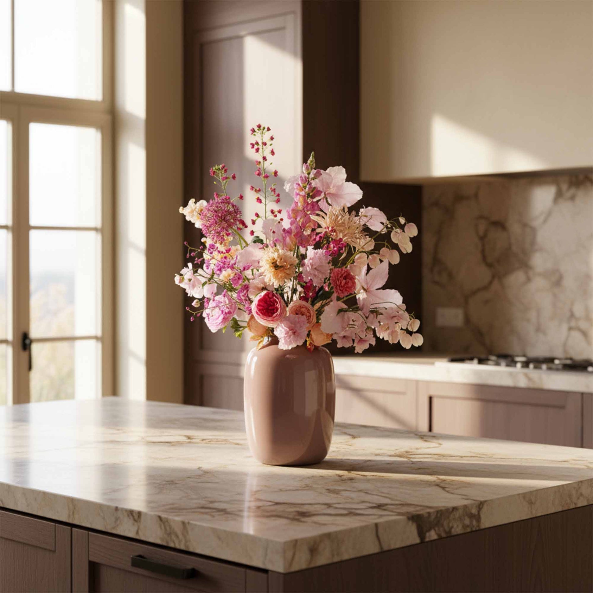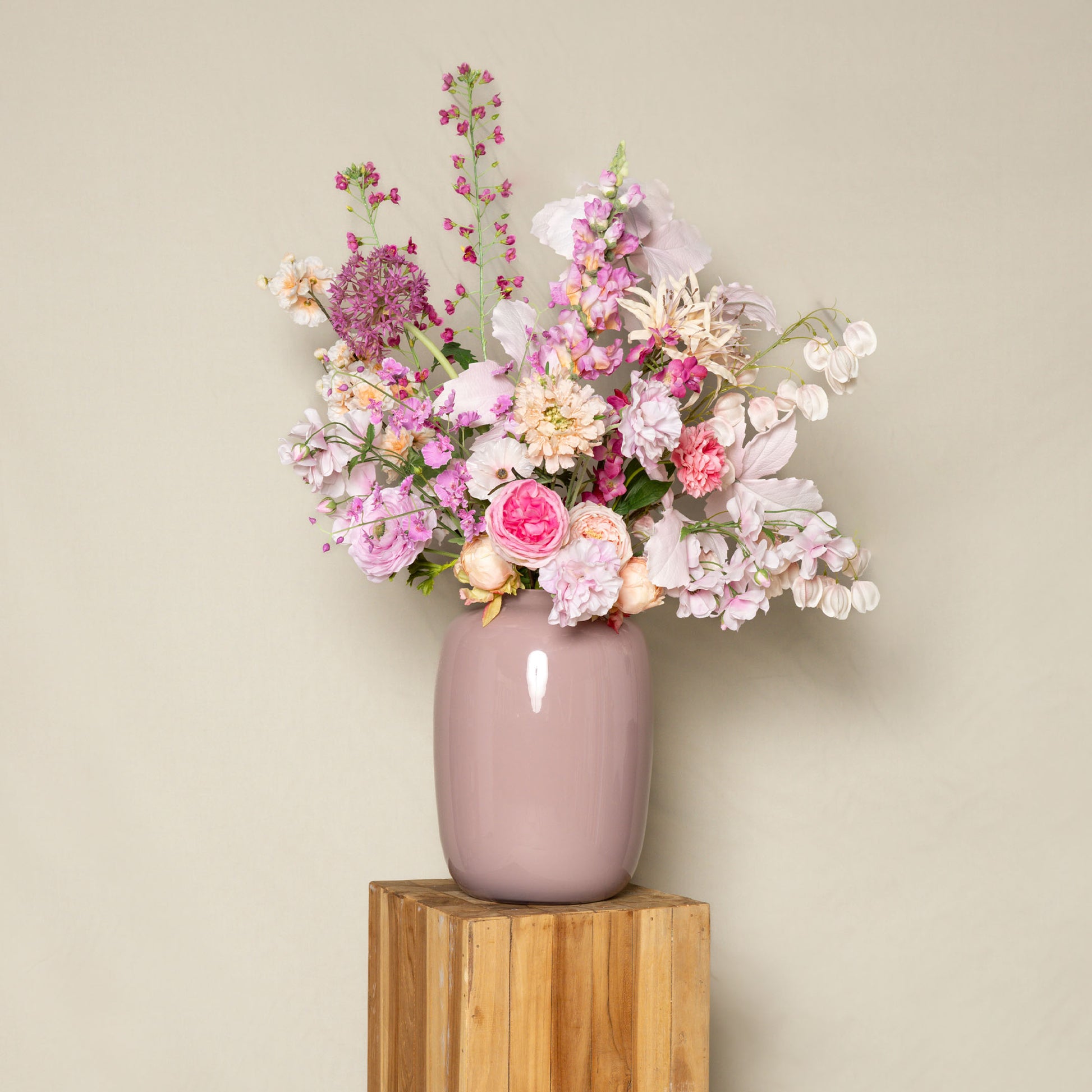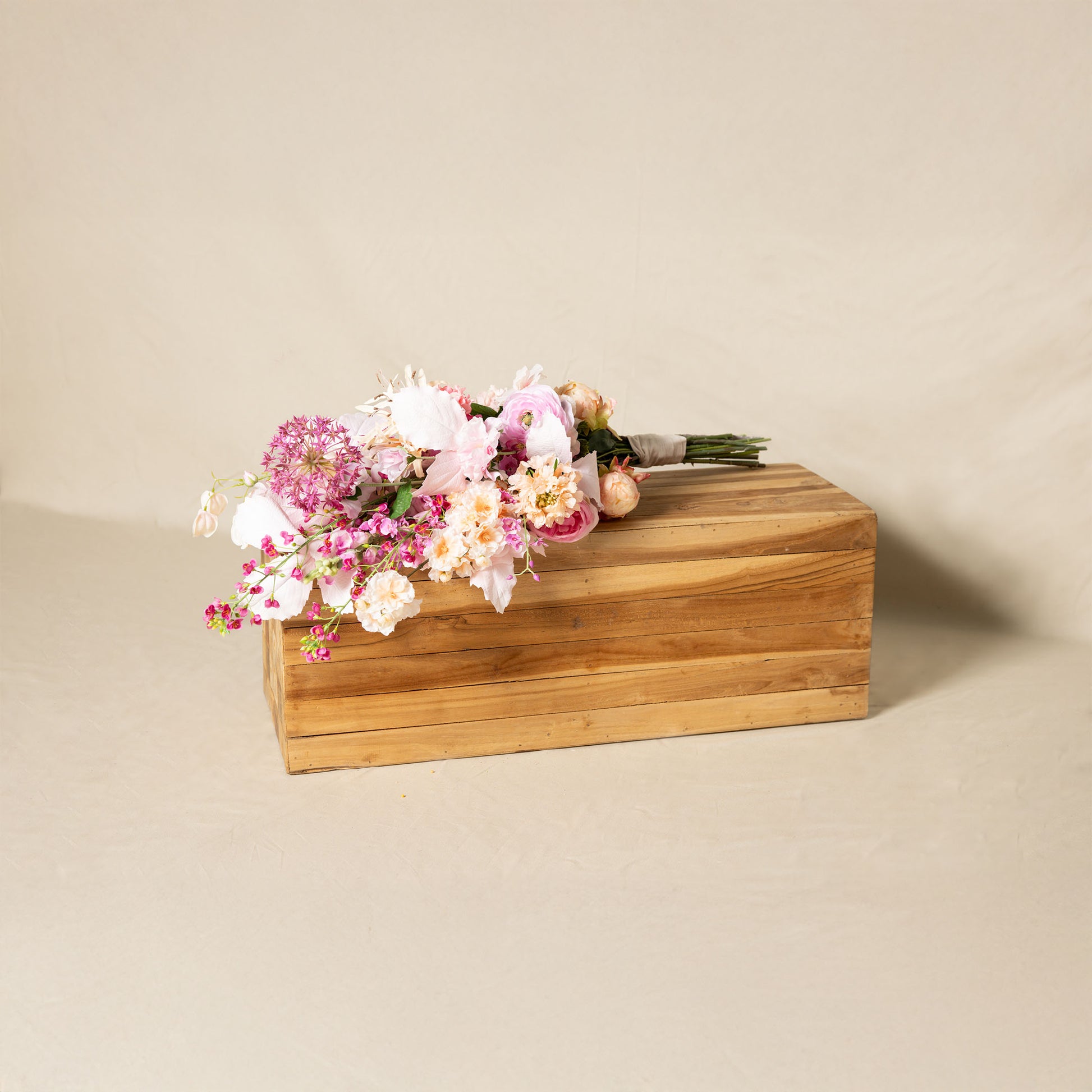 Een stijlvol zijden rouwboeket in tinten van lichtroze, diep roze en perzik. Handgemaakt met hoogwaardige zijden bloemen als blijvend symbool van waardering en dankbaarheid. Perfect om te plaatsen bij het afscheid en daarna thuis te bewaren als tastbare herinnering aan jouw dierbare. Ieder boeket is uniek en kan licht afwijken van de afbeelding.